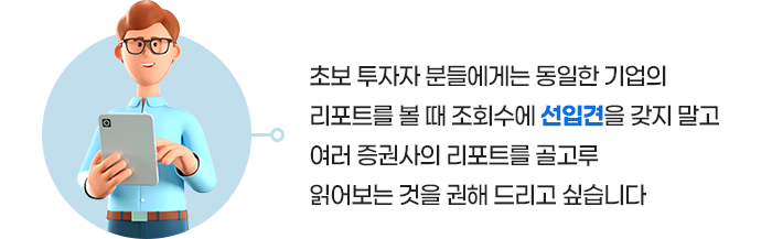리포트를 자주 보게 되면 종목이나 산업(업종)에서 애널리스트의 이름도 자연스레 기억하는 날이 올 것이고 분명 자신이 좋아하는 사람도 생기게 될 것입니다. 그럼, 좀 더 리포트 보는 것이 친숙해지지 않을까요?