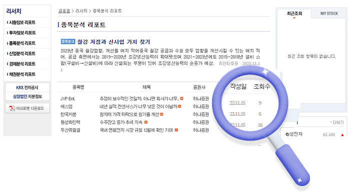 물론 같은 종목의 리포트라면 베스트 애널리스트의 리포트가 상대적으로 조회수가 높을 수 있습니다.