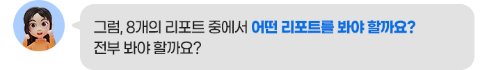 그래서, 지금부터 리포트를 고르는 기준을 무엇으로 할지, 내용은 어떻게 보면 되는지에 대해 알아보겠습니다.