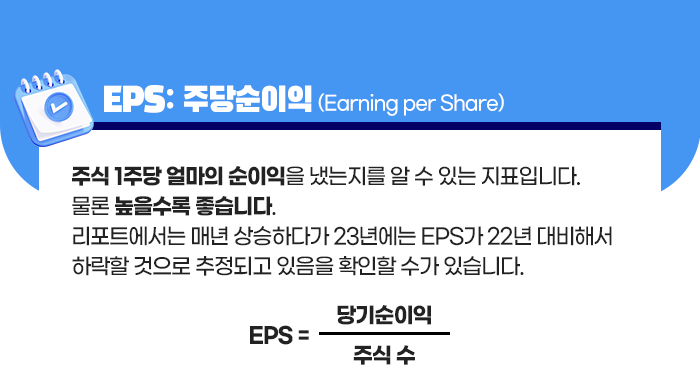 EPS, ROE는 높으면 좋지만, PER은 꼭 그렇지는 않습니다. 오히려 높으면 주가가 비싸다고 볼 수도 있습니다.