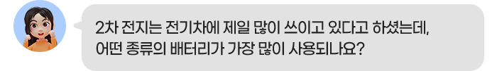 2차 전지는 구성 요소에 따라 1)납 축전지, 2)니켈계 2차 전지, 3)리튬계 2차 전지로 나뉘는데 이 중 리튬계에 속하는 ‘리튬이온 배터리’를 전기차용 배터리로 가장 많이 사용 중입니다.