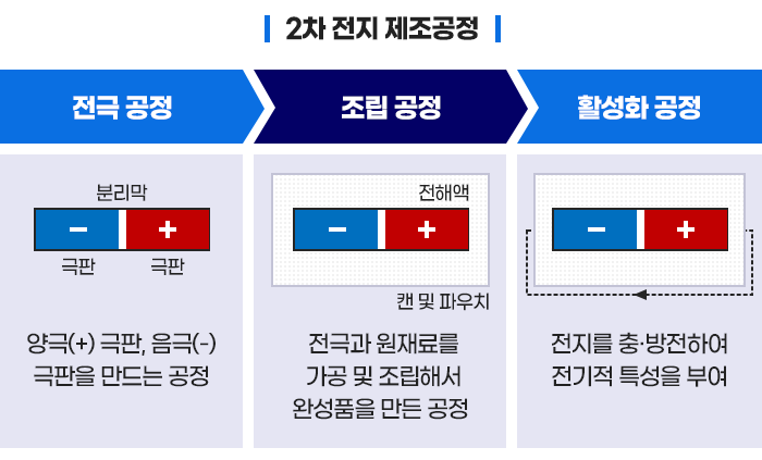 활성화 공정: 제조된 셀에 충·방전을 반복하면서 전기적 특성을 활성화