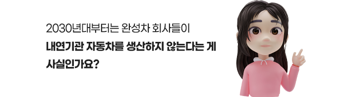 또한, 유럽 연합에서는 2035년부터 내연기관 자동차 판매를 금지할 것이라고 하여 2030년대를 자동차의 대전환이 될 것이라고 예측하고 있는 것입니다.
