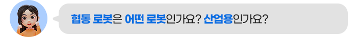 네. 맞습니다. 협동 로봇은 산업용 로봇에 포함되지만, 전통적인 제조업용 로봇과는 달리 스스로 사람을 인식하고 움직임을 멈추기 때문에 한 공간에서 작업자와 함께 일하는 것이 가능하기 때문에 산업용 로봇에서 따로 구분하기도 합니다.