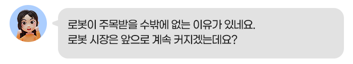 이러한 이유 때문에 삼성전자, 현대차 등 유수의 국내 기업들이 차세대 사업으로 로봇 사업을 주목하고 있는 것입니다.