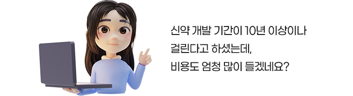 네. 맞습니다. 약 1~2조 원 정도의 비용이 소요된다고 합니다. 게다가, 화학 의약품은 평균 6% 정도의 성공률이라고 하니, 신약 개발의 성공을 위해서는 정말 막대한 투자와 지원이 필요합니다.