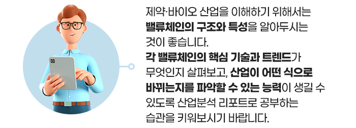 앞으로도 고성장이 기대되는 제약·바이오 산업에서 부가가치가 높은 연구개발, 제조생산(CMO, CDMO) 역량 등 글로벌 경쟁력을 가진 기업이 국내에서도 탄생하기를 응원합니다!