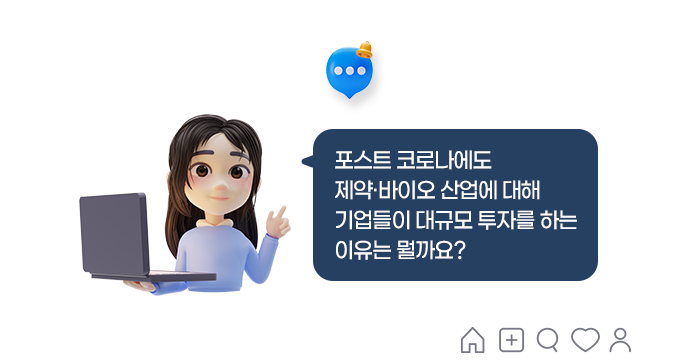 제약·바이오 산업은 꾸준히 발전해 왔으며, 고령화 추세와 만성 질환 증가 등으로 앞으로도 지속적인 성장이 예상됩니다. 다만 사람을 대상으로 하기에 연구 개발에서 상업화까지 상당한 시간과 비용이 소요되는 어려운 산업 분야이기도 합니다.