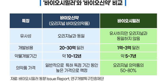 바이오시밀러는 특허가 만료된 오리지널 바이오 의약품에 대한 복제약으로