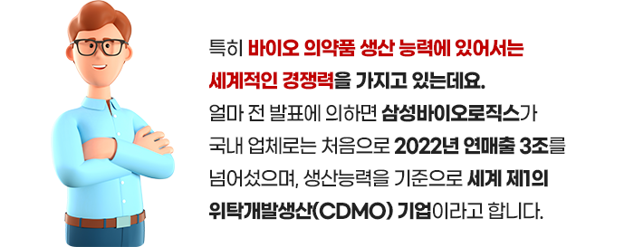 우리나라는 이제 연구개발뿐만 아니라 최고 수준의 의료인력, 높은 바이오 의약품 생산능력까지 갖추고 있어서 제약∙바이오 산업의 성장 가능성이 높게 평가받고 있습니다. 연구개발 부문인 임상시험의 글로벌 점유율은 3.4%로 전 세계 6위이고, 15개 시·도에 25개 바이오 클러스터가 조성돼 있으며, 대표적으로 송도와 마곡, 판교 세 곳을 꼽을 수 있습니다.