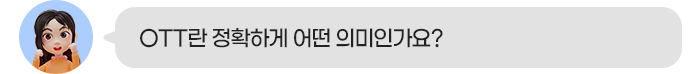 기존의 방송 서비스와 달리 OTT는 인터넷으로 콘텐츠를 전송하기 때문에 이용 시간이 자유롭고 PC, 스마트폰 등 다양한 기기로 이용할 수 있습니다.