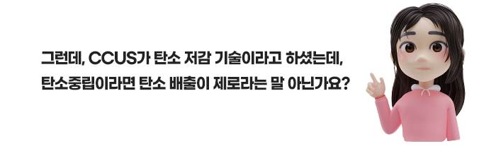 하지만, 이 방법들로만은 탄소 제로를 달성하기 어렵기 때문에 생성된 이산화탄소를 포집하고 활용하는 CCUS 기술이 필요한 것입니다.