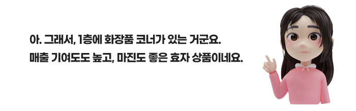 두 번째 이유는 마진입니다. 백화점은 땅값이 비싼 도심지에 지어지기 때문에 마진이 높은 상품을 팔아야 하는데, 대표적인 상품 카테고리가 화장품과 패션/의류입니다.