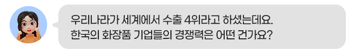 오늘은 중국 수출 감소로 어려움을 겪었지만, 프랑스, 미국, 독일에 이어 세계 4위의 수출 규모를 기록하며 한국의 수출 주력 사업으로 자리 잡은 화장품 산업에 대해 알아보겠습니다.