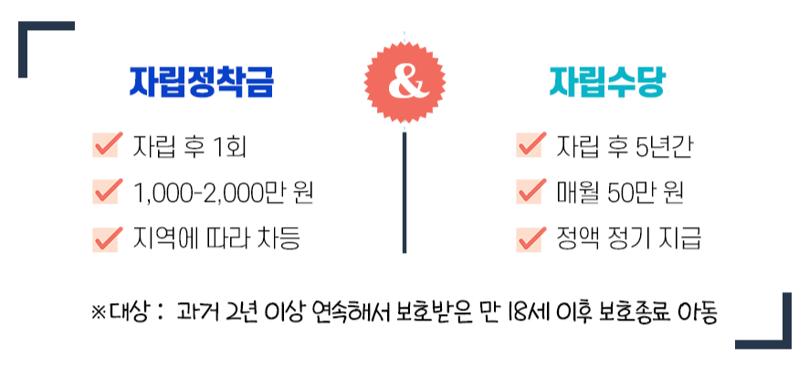 자립정착금이 일시금이라면, 자립수당은 매월 지급되는 정기적인 지원금입니다. 보호종료 후 5년간 자립수당을 월 50만 원 받을 수 있어요.