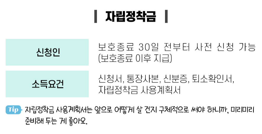 자립정착금은 보호시설을 나오기 한 달 전부터 신청할 수 있습니다. 먼저 자립지원전담기관이나 시설 선생님께 상담을 받고, 그다음에 동주민센터에 가서 신청하면 됩니다.