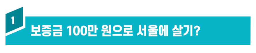 네, 맞아요! 보증금 100만 원으로도 서울에 살 수 있어요. 자립준비청년은 어린 나이에 보호종료와 동시에 바로 주거 문제를 해결해야 하고, 신용, 보증인을 구하기 어려워 국가에서 특별한 주거지원 제도를 마련해 도움을 주고 있어요.