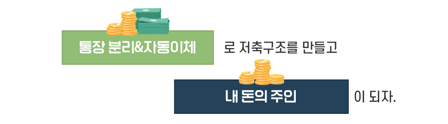 들어오면 쓰고, 또 쓰고, 남으면 넣자고 생각하면 월말에 남는 게 없거든요. 돈을 어떻게 쓰는지 불필요한 돈을 쓰지는 않는지 자동이체를 통해 미리 계획하고 저축이 자동으로 되는 구조를 만들어 보세요.