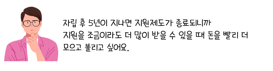 일반 청년들과 달리 '비빌 언덕'이 없는 상황에서 스스로 경제적 안전망을 만들어야 하니까요.