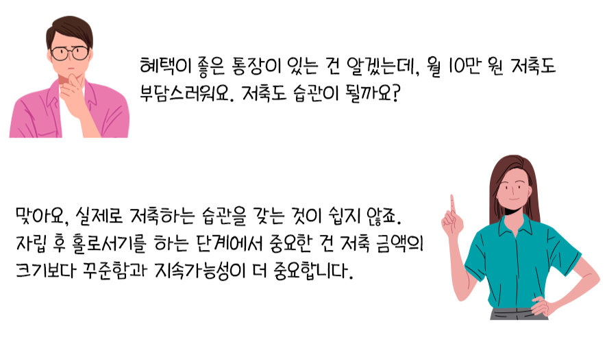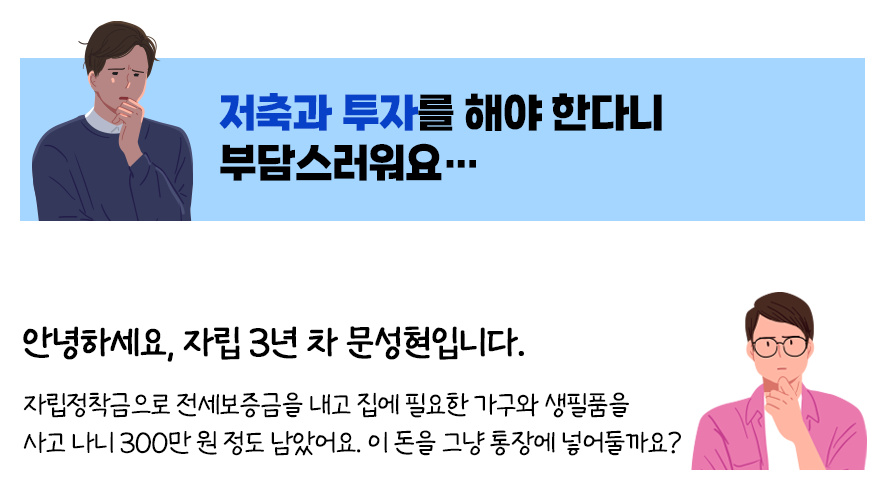 계획적으로 소득을 관리하면서 미래를 위한 자산을 차곡차곡 쌓아갈 수 있는 체계적인 방법이 필요한 거죠. 그래서 자립준비청년들에게는 자산을 모으고 불리는 저축과 투자가 선택이 아니라 생존을 위한 필수 전략이에요.