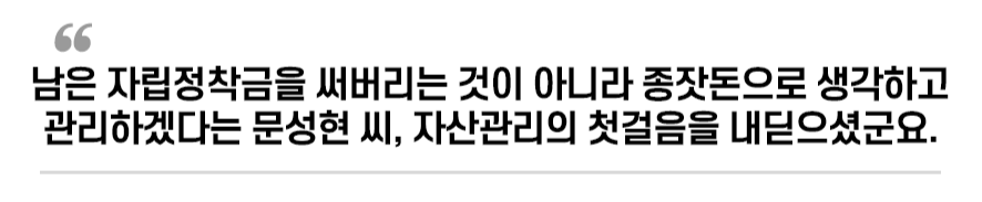'아, 이대로는 안 되겠구나'라는 생각이 드는 순간이 오게 되죠. 그래서 지금부터라도 조금씩 저축하고 투자도 하는 습관을 만드는 게 정말 중요해요.