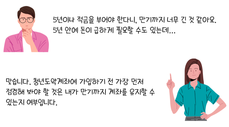 청년도약계좌는 특히 더 중도해지하면 정말 큰 손해를 보기 때문에 만기 유지가 가장 중요합니다.