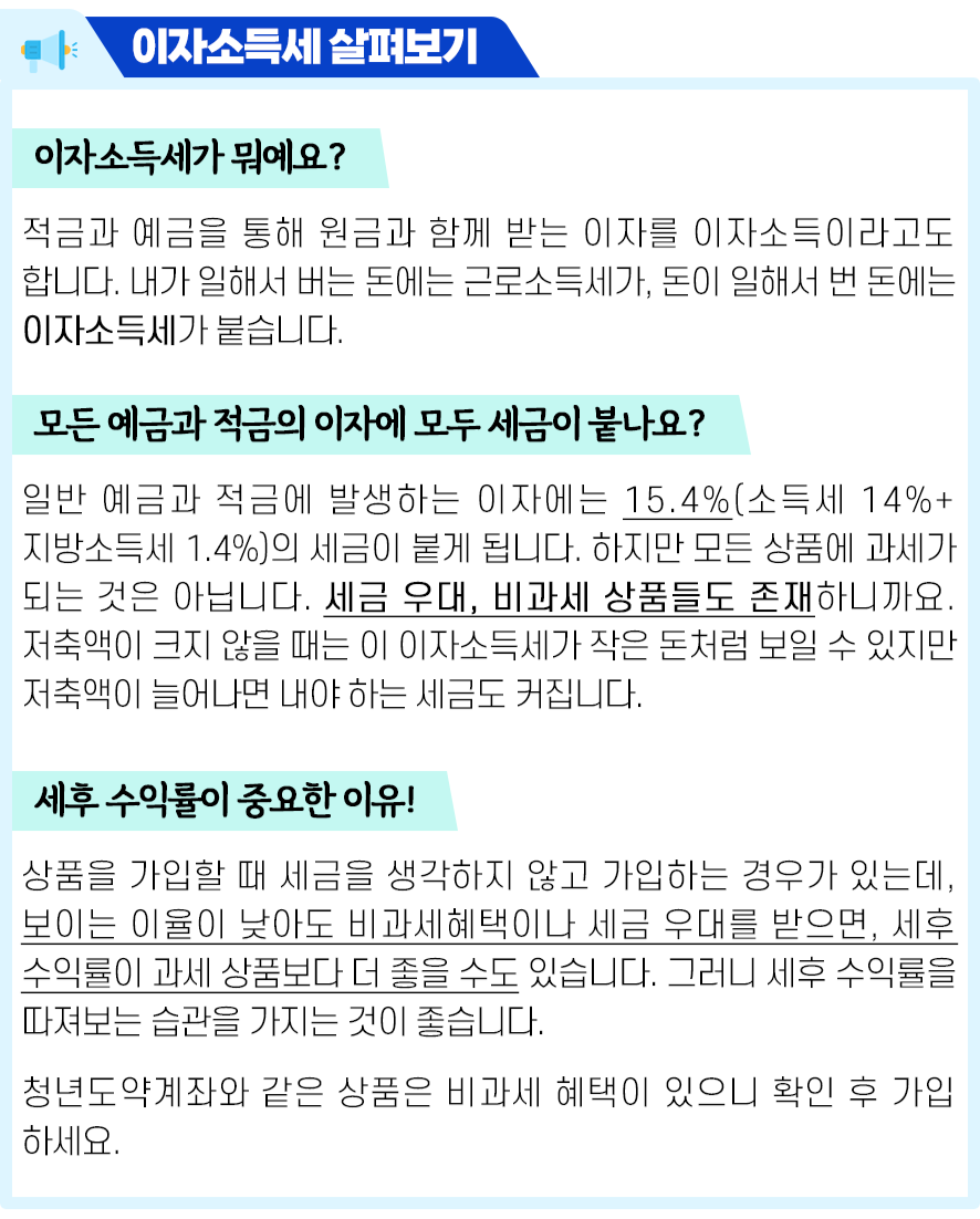 기초생활수급자라면 더욱 좋은 혜택이 있어요. '비과세종합저축'으로, 저축 원금 5천만 원까지 이자소득세를 완전히 면제받을 수 있어요. 다른 복잡한 조건도 없고, 전 금융사를 통합한 원금 기준으로 간단하게 적용되거든요.