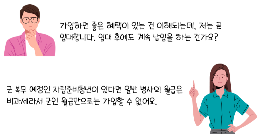 하지만 군대 입대 전에 가입한 상태라면 최대 2년 동안 적립중지 신청을 할 수 있죠.