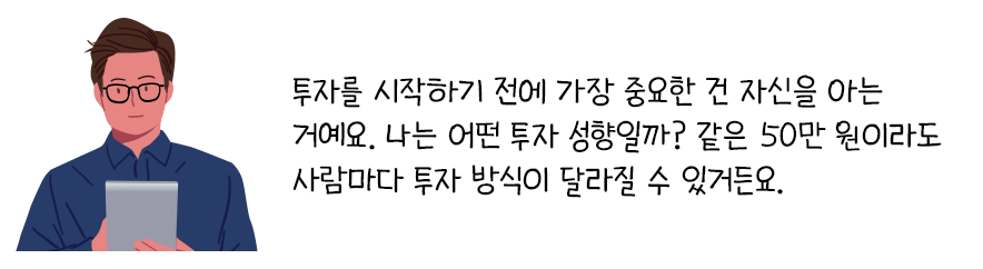바로 이런 마음이 투자의 시작점이에요. 그런데 투자를 시작하기 전에 꼭 알아야 할 것들이 있어요. 투자가 정확히 뭔지, 그리고 나는 어떤 성향의 투자자인지 말이에요.