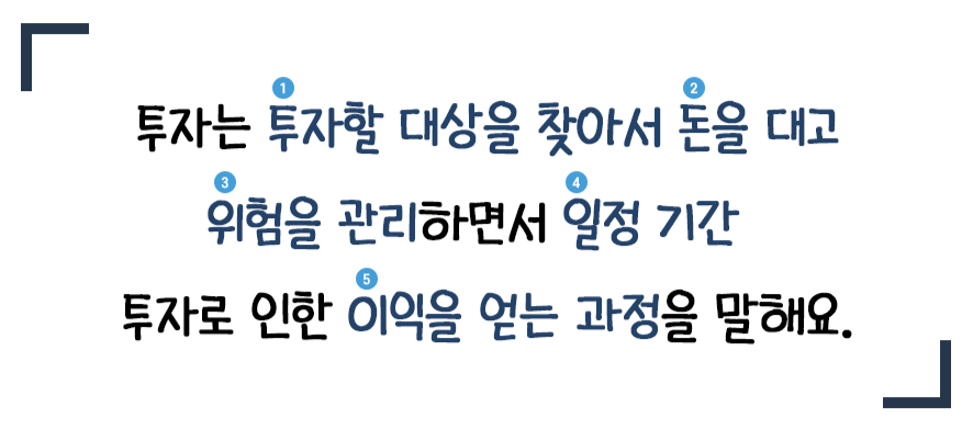 투자는 도박이 아니에요. '한 방에 인생 역전'을 꿈꾸는 투기도 아니고요. 투자는 원금손실 가능성이 있지만 감당할 수 있는 범위 내에서 위험을 관리하면서 자신의 미래를 위해 돈을 합리적으로 운용하는 것이랍니다.