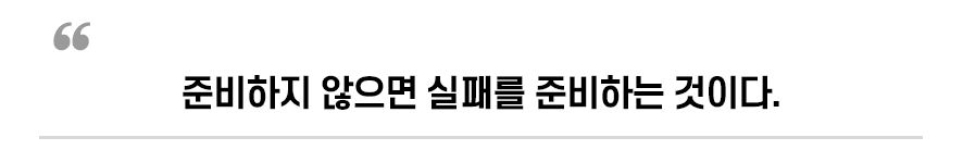 어려운 가정환경 속에서도 끊임없는 자기 계발과 철저한 준비로 미국의 대표적인 위인으로 칭송받는 벤저민 프랭클린은 이 말을 신조로 삼아 준비 없이는 어떤 일도 성공할 수 없다는 것을 몸소 실천했습니다.