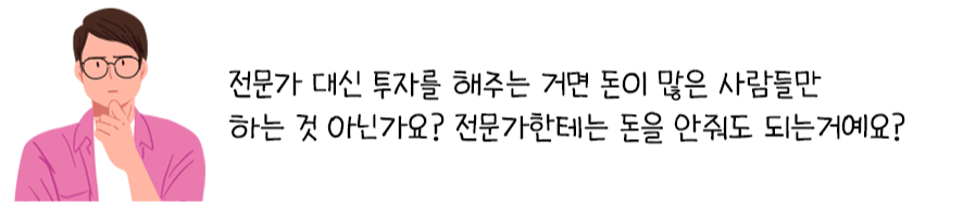 그런 궁금증이 생길 수 있죠. 펀드의 가장 큰 장점은 전문가의 노하우를 활용할 수 있다는 거예요. 그 대가로 수수료를 내야 하죠. 하지만 이 수수료는 펀드를 사는 모든 사람이 나누어 내는 것이라 개인 부담은 적어지는 거예요.