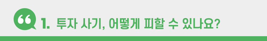 투자 사기를 피하려면 고수익을 보장하는 투자는 의심하세요. 정당한 투자에서는 누구도 수익을 보장할 수 없거든요.