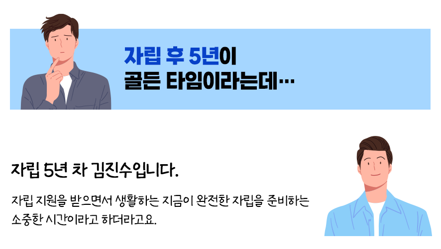 자립 후 5년 동안은 지원제도의 혜택을 받으며 나에 대해서 알고, 미래에 어떤 사람이 될지 목표를 세우고, 그에 맞는 바람직한 생활 습관을 만들 수 있어서 골든타임이라고 하는 거예요. 이 골든타임을 현명하게 보내야 자립 생활이 안정될 수 있거든요.