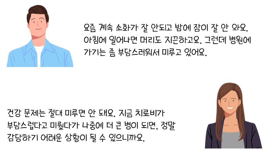 MRI나 CT 등과 같은 정밀검사라든지 4인, 6인실 병실이 없어서 입원할 때 1, 2인실을 이용해야 하는 경우도 생길 수 있거든요. 이런 상급 병실은 의료급여로 보장되지 않아요. 이때 실손의료보험이 있다면 내가 낸 병원비를, 보험을 통해 돌려받을 수 있어요.