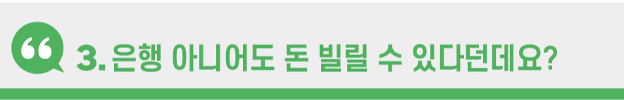 모아 놓은 돈은 없는데, 갑자기 목돈이 필요한 상황이 생길 수 있죠. 그럴 때 "돈을 빌려준다"는 곳에서 덜컥 돈을 빌려버리고 난 후, 이자나 원금을 갚지 못해서 고생하는 경우가 정말 많아요.