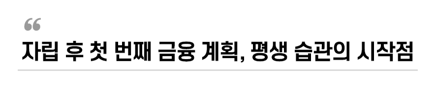 자립 후 하게 되는 모든 결정들을 혼자 다 해야 한다고 힘들지는 않았나요? 미래를 위한 결정, 저축, 투자. 이 모든 것들은 작은 시도에서 시작됩니다. 처음에는 서툴고 실수할 수도 있어요.