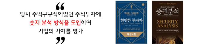 벤저민 그레이엄은 투자와 투기가 구별되지 않던 시기에 자신만의 가치투자의 원칙을 만들었고, 이 원칙은 지금도 수많은 투자자에게 중요한 원칙으로 받아들여지고 있습니다.