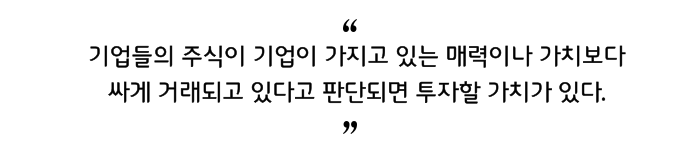 기업에 대한 숫자들을 분석, 즉 계량적인 방법으로 기업에 대한 내용들을 분석해서 파악된 그 회사의 가치가 현재 주식시장에서 거래되고 있는 가격보다 높다면 이러한 기업에 투자하여 적정한 수익을 얻는 것을 가치투자라고 합니다.