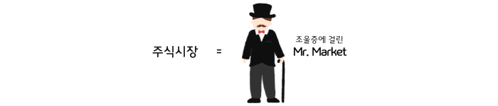 그레이엄은 변덕스러운 주식시장을 조울증에 걸린 Mr. Market에 비유했습니다. 매일 'Mr. Market'이 나타나 자신의 주식을 다른 가격에 사거나 팔겠다고 제안합니다. 일반 투자자들은 미스터 마켓에 잘 속기 때문에 돈을 잃습니다.