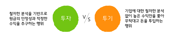 벤저민 그레이엄에 따르면 철저한 분석을 기반으로 원금의 안정성과 적정한 수익을 추구하는 행위를 투자(investment)라고 하며, 반대로 자신이 투자하려는 기업이 무엇을 하는지 알아보지도 않고, 또는 재무적으로 얼마나 튼튼한지 확인해 보거나 그 회사의 CEO가 어떤 사람인지를 확인하지도 않고 무턱대고 그 회사에 돈을 투입하면 그것이 바로 투기(speculation)라고 하였습니다.