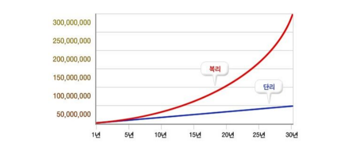 복리 효과란 이자가 원금에 추가되어 그로 인해 발생하는 이자가 다시 원금에 추가되는 것을 반복함으로써 원금이 빠르게 증가하는 현상을 말하며, 주식으로 보면 배당을 계속 재투자하여 수익을 키워나가는 것을 의미합니다.