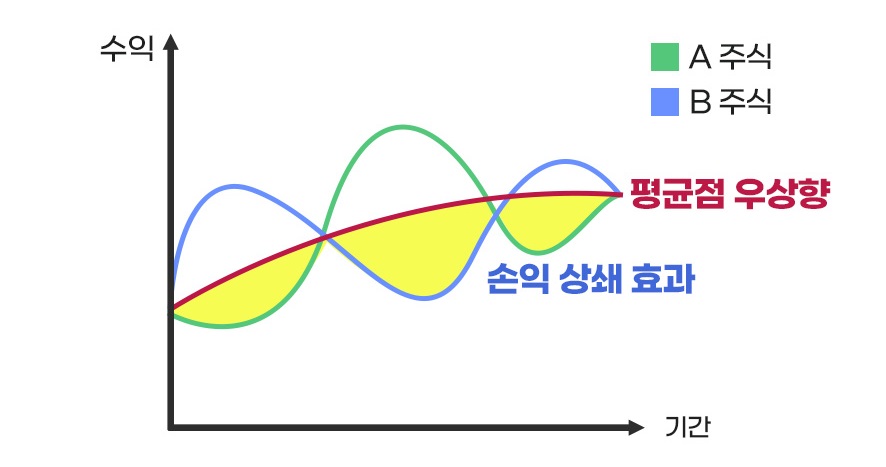 한 종목이 떨어져도 다른 종목이 올라서 전체 수익은 완만해진다고요. 이렇게 하면 대박을 기대할 순 없지만, 쪽박은 안 차게 되죠.
