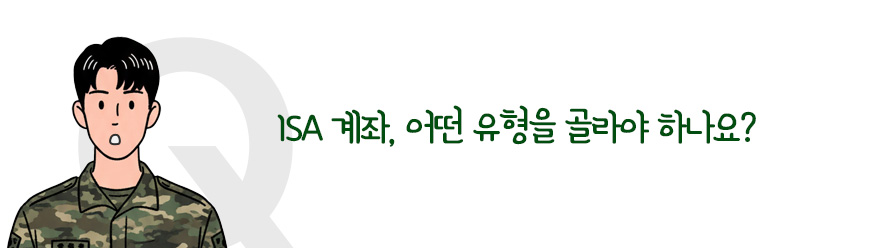 ISA 서민형은 연봉 5,000만 원 이하거나 종합소득 3,800만 원 이하일 때만 가입할 수 있는데 군 복무 중에 받는 급여 외에 다른 소득이 없다면 자동으로 서민형이에요.
